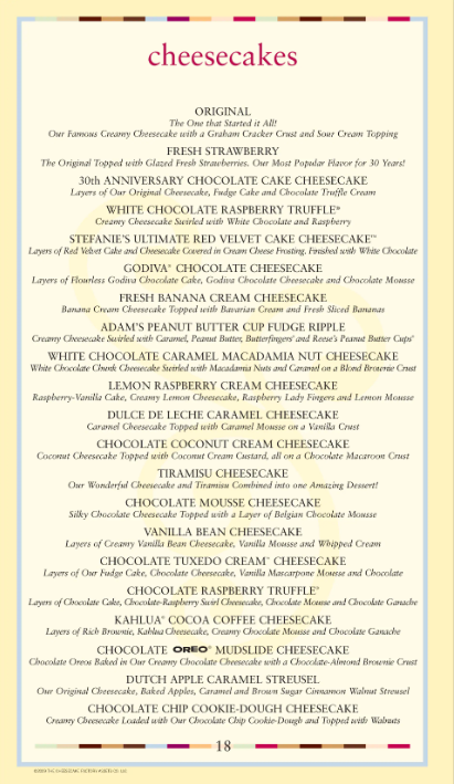 치즈케이크팩토리는 정말 메뉴가 많아요...